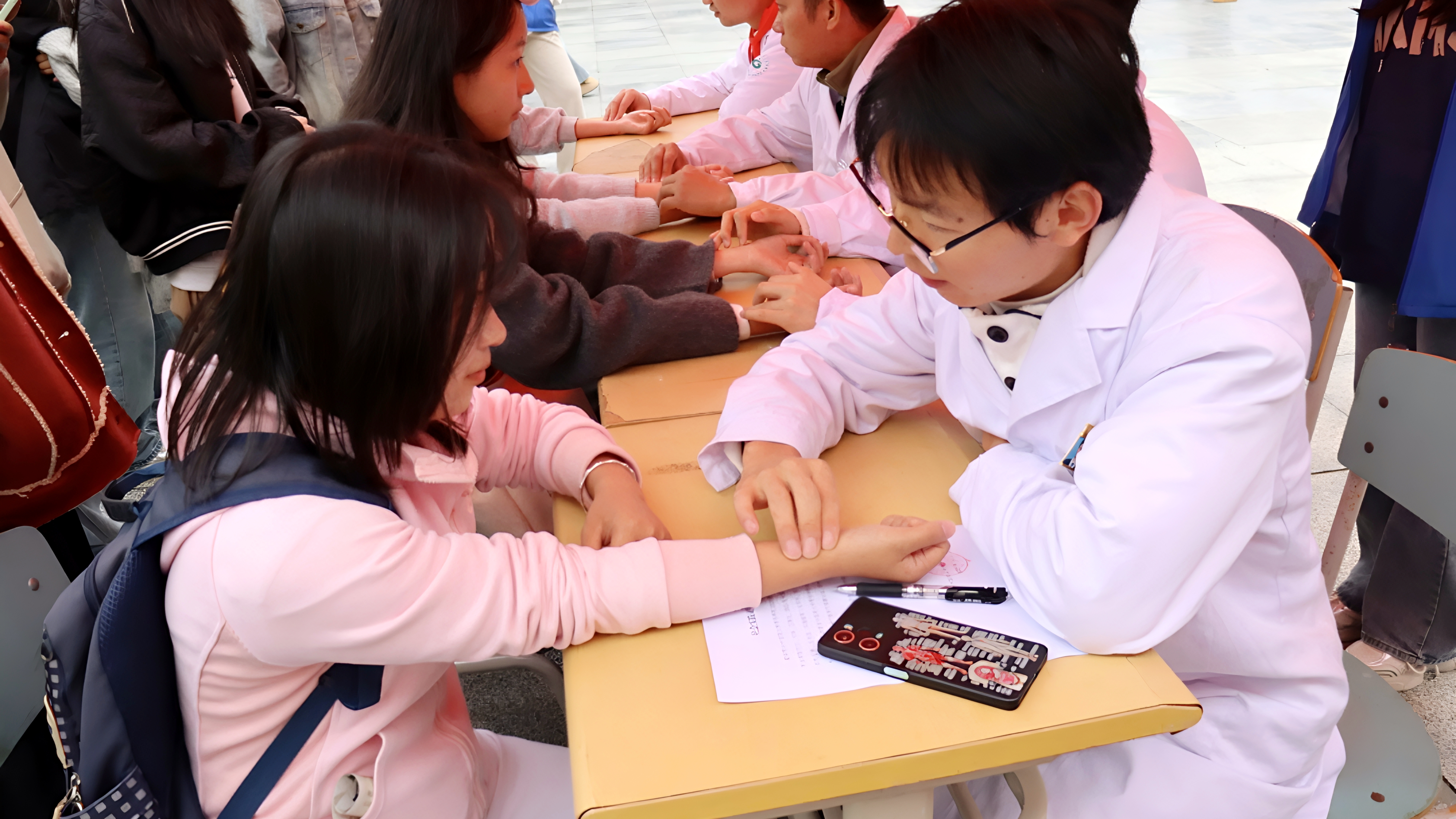 宣讲结束后,现场互动体验环节掀起热潮——医师们现场示范把脉、望诊等中医特色疗法,手把手指导同学们感受脉象变化,亲身体验传统诊疗的精妙之处。趣味中医药游戏则以寓教于乐的方式,让同学们在轻松氛围中记忆中药功效、辨识传统疗法,进一步加深对中医药文化的理解。