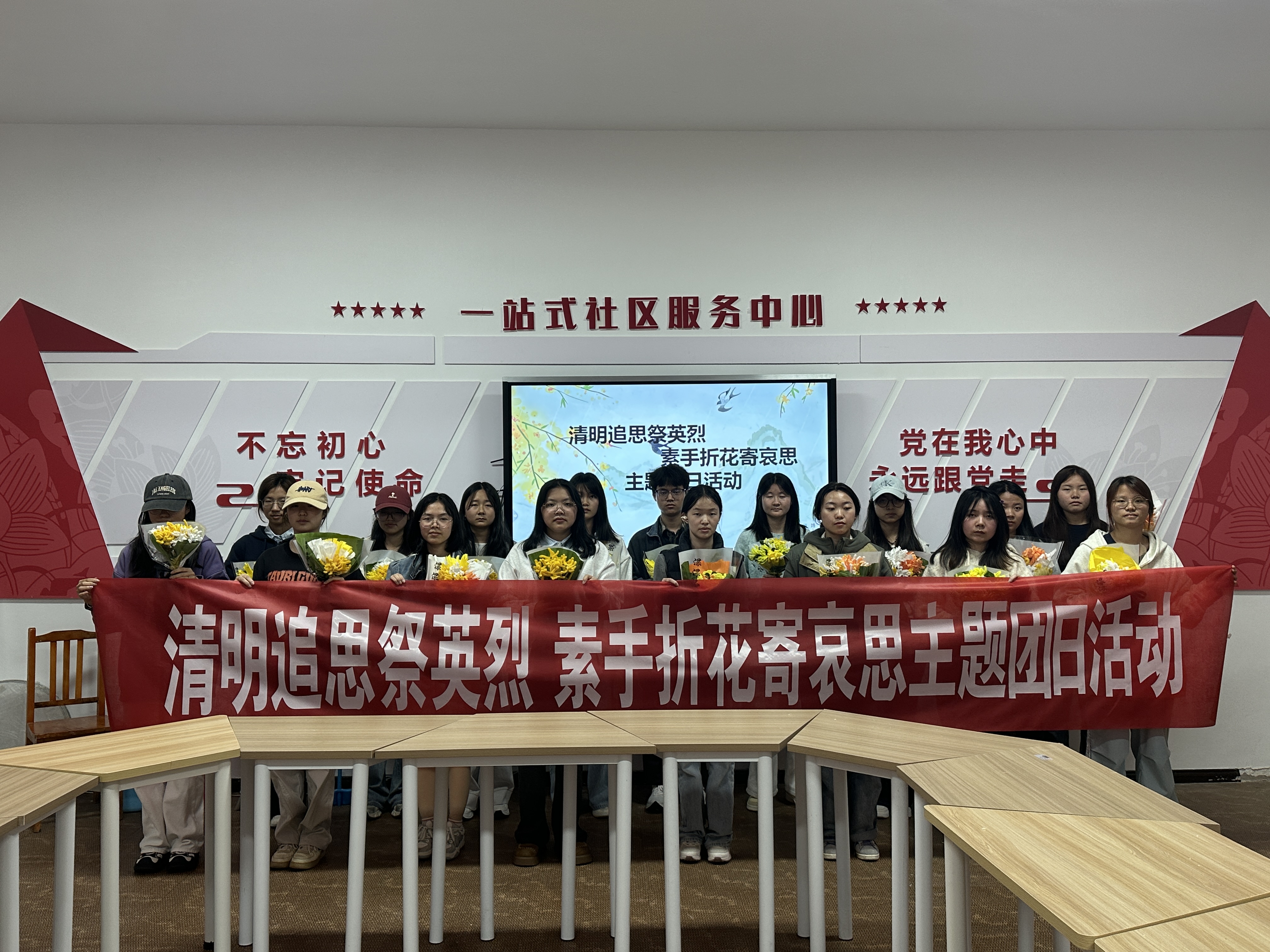 4月3日,皇朝娱乐城 、大数据统计学院在樱花一站式活动中心举办“清明追思祭英烈·素手折花寄哀思”主题团日活动,吸引各年级同学积极参与。