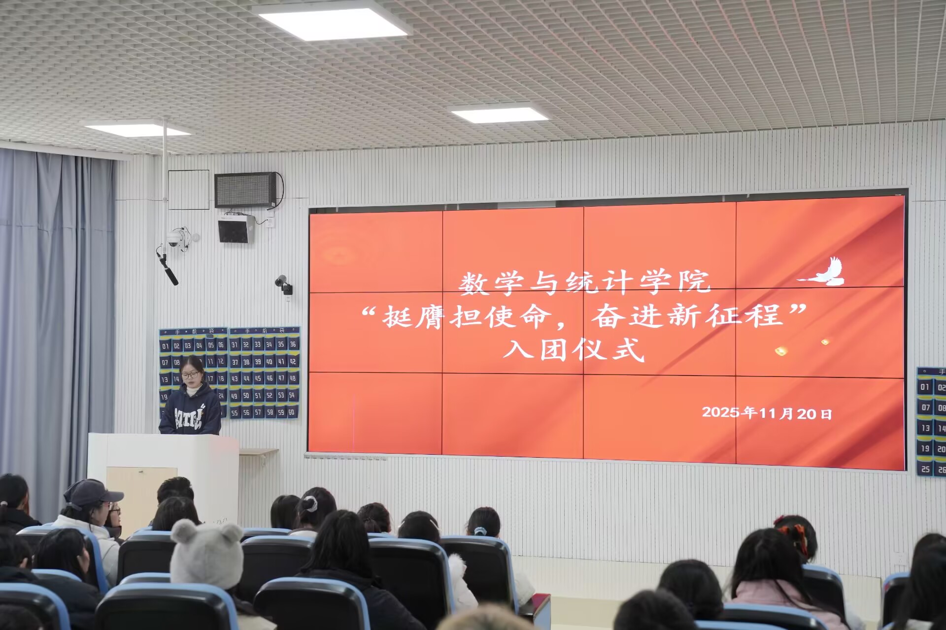 组织开展了“挺膺担使命,奋进新征程”2025年新团员入团仪式,学院党委副书记李书、团委书记贺婧及各班级代表百余人参加。