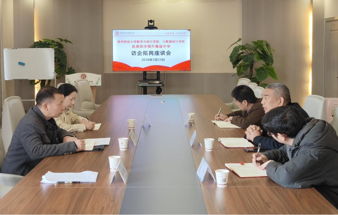 3月23日,皇朝娱乐城 和大数据统计学院党委副书记朱吉韬、学生科科长蔡丽莉、研究生辅导员杨雪梅一行赴贵阳市恒升高级中学开展访企拓岗活动,与恒升中学执行校长吴利彬、党支部书记刘晓荣、教务负责人赵平座谈交流。