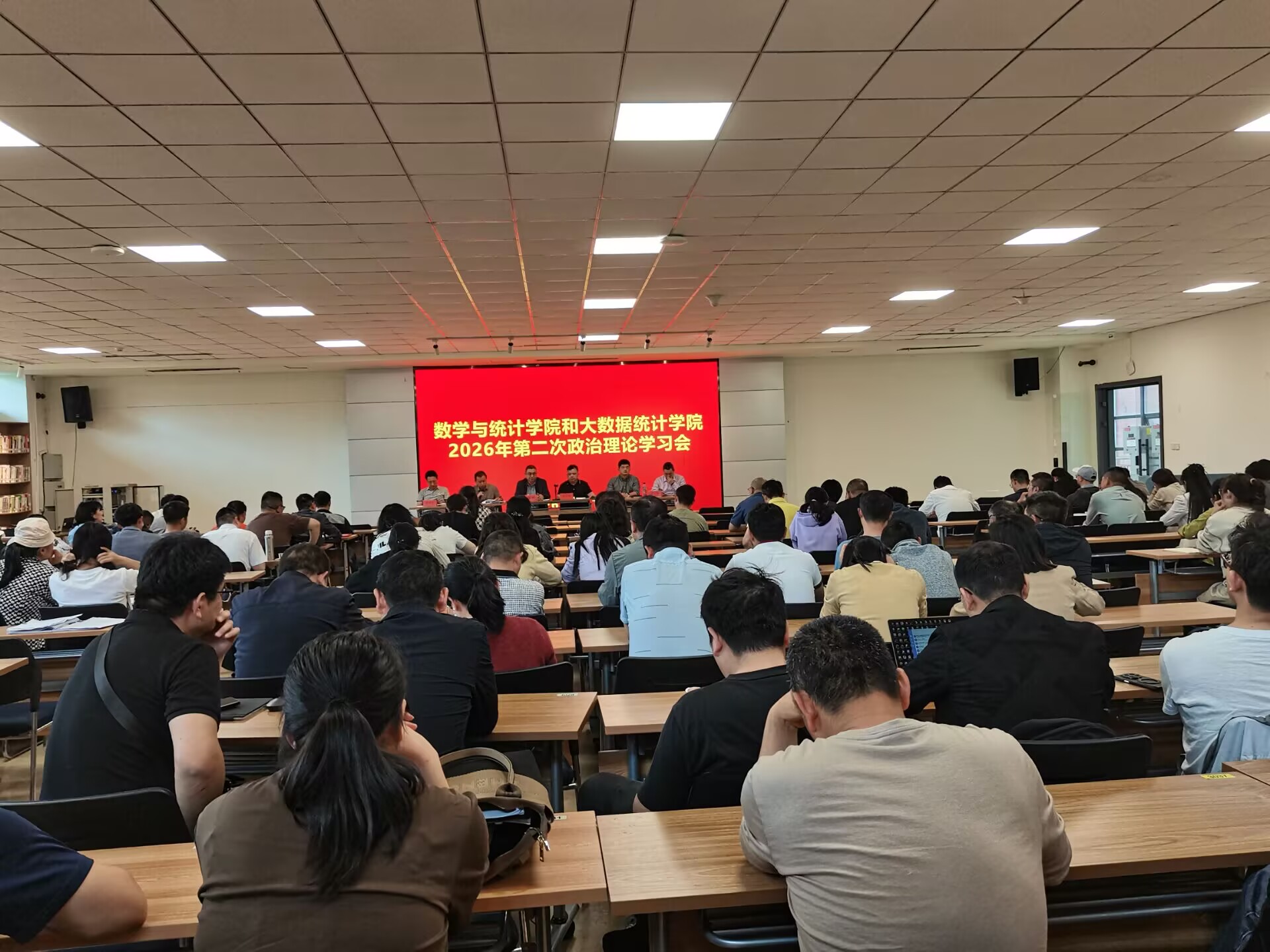 和大数据统计学院在修德楼218会议室召开第二次教职工政治理论集体学习研讨会。学院党政领导班子及全体教职工参加,学校党委委员、学院党委书记虞帆主持。